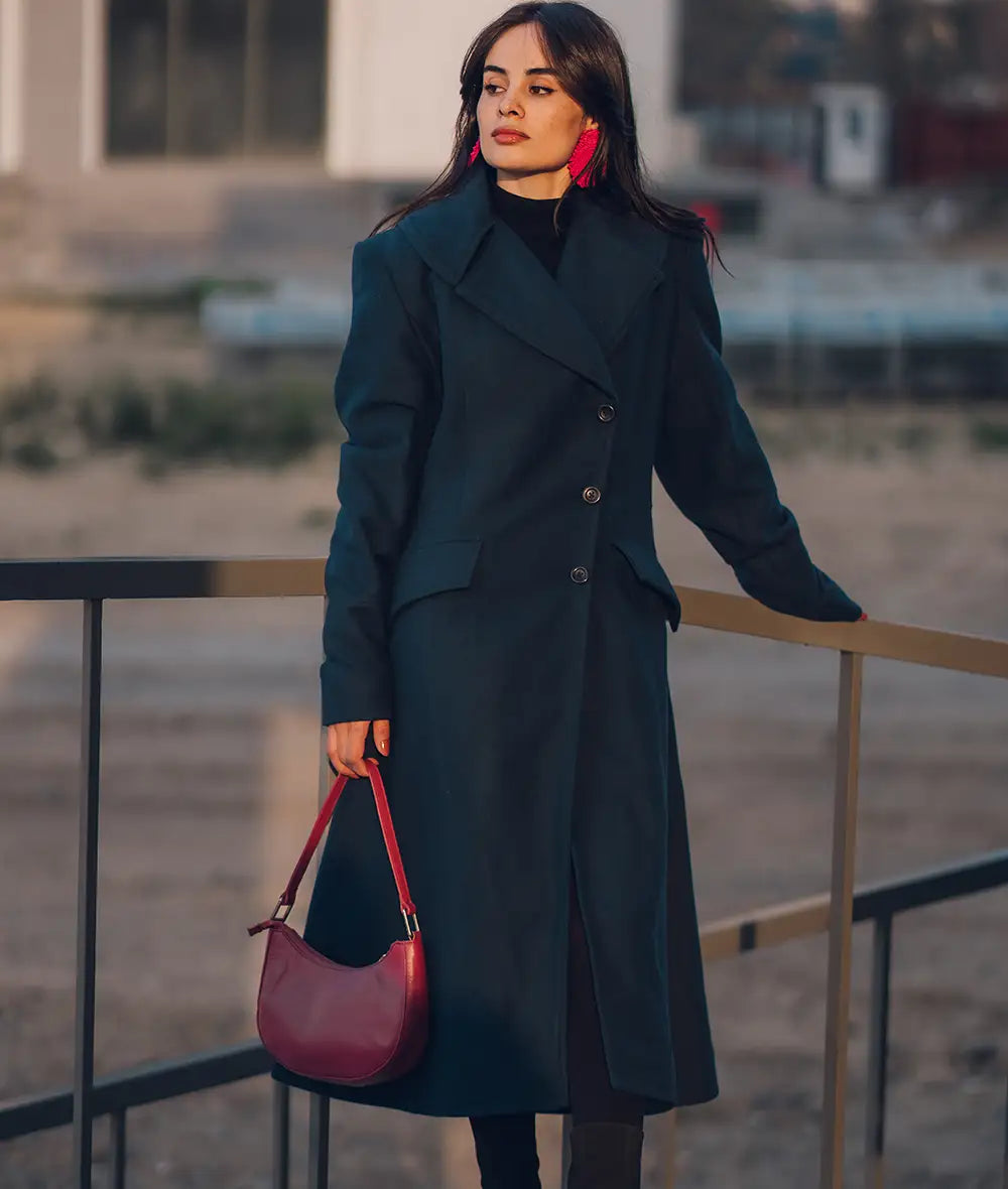 Indulge in warmth and style with the Clarice Women's Long Wool Coat. Made from premium wool blend, this coat is designed for comfort and effortless elegance. The semi-fitted silhouette flatters the figure, while the classic double breasted design and rich green color ensure timeless appeal. Make a statement this winter, and turn heads with the Clarice Coat.