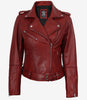 Women's Red Asymmetrical Belted Biker Style Leather Jacket