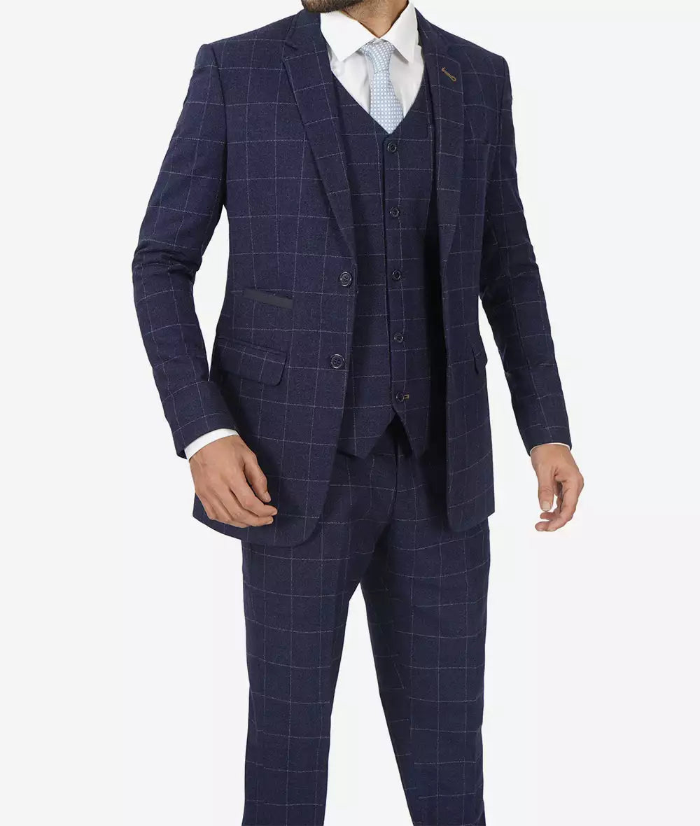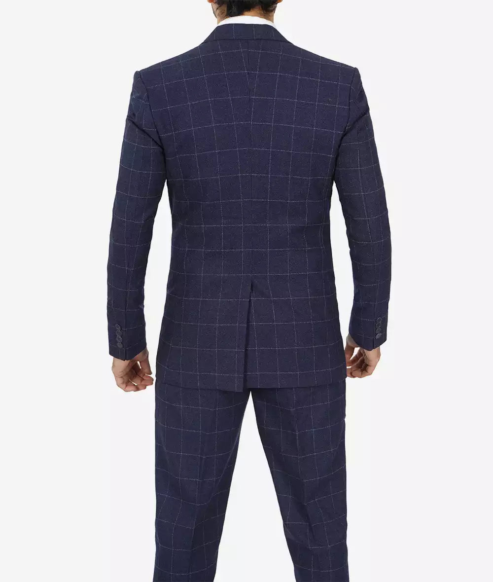 Men's Navy Blue Check 3-Piece Suit – 1920s Vintage-Inspired