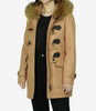 Women's Camel Brown Hooded Shearling Wool Duffle Coat