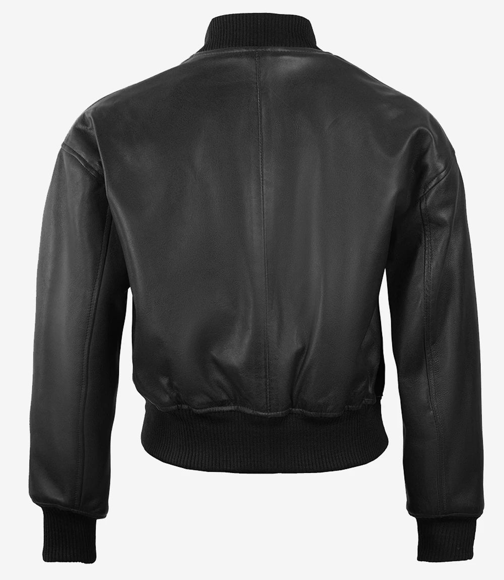 Womens Drop Shoulder Black Bomber Leather Jacket - Cropped Style