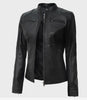 Womens Tall Black Biker Style Leather Jacket