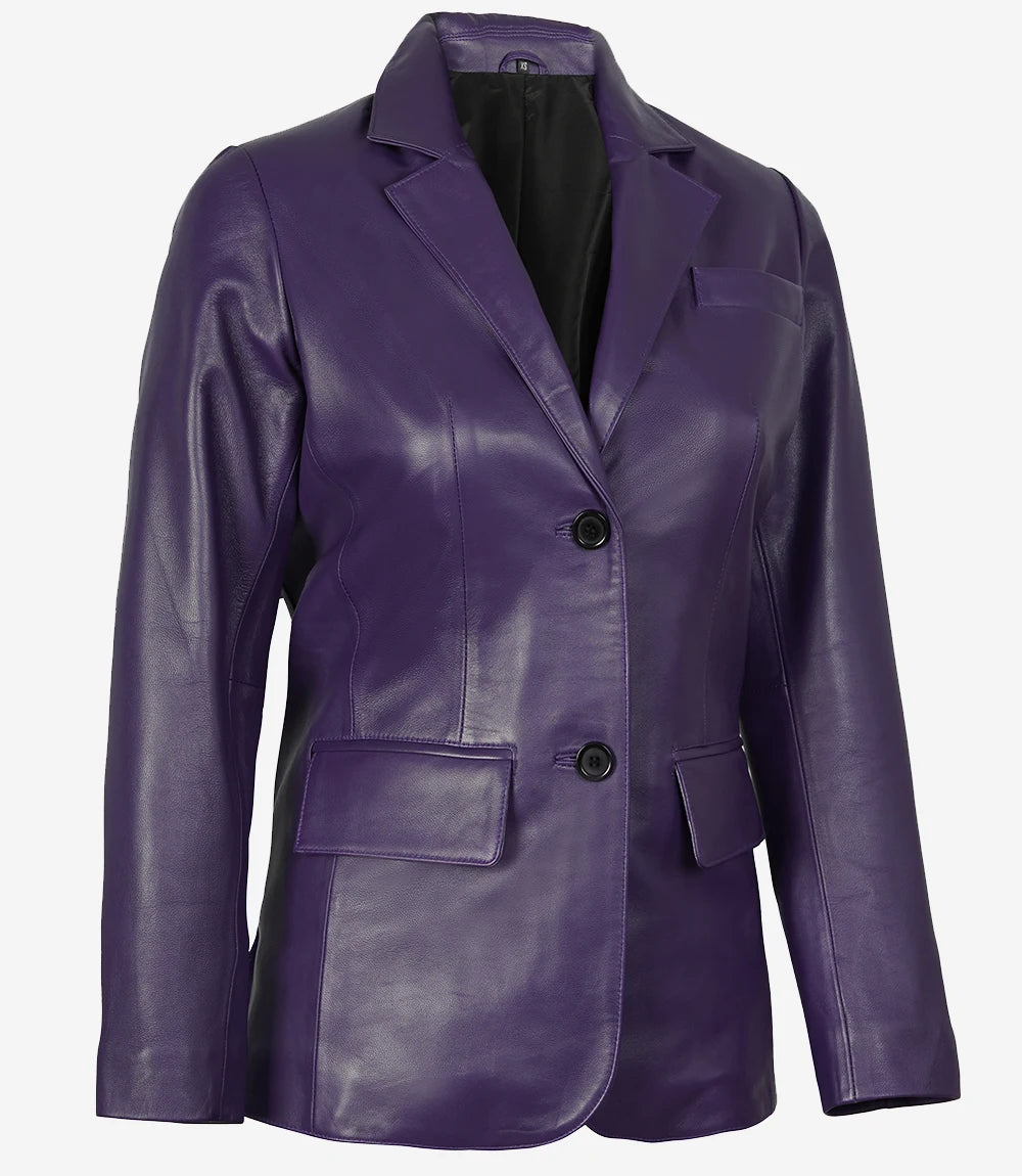 Women's Two Button Purple Leather Blazer - Notch Lapel